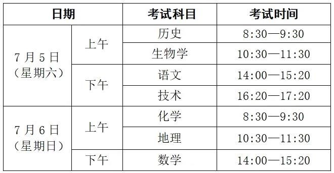 2025年7月浙江省普通高中学业水平考试时间安排如下: